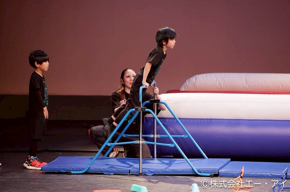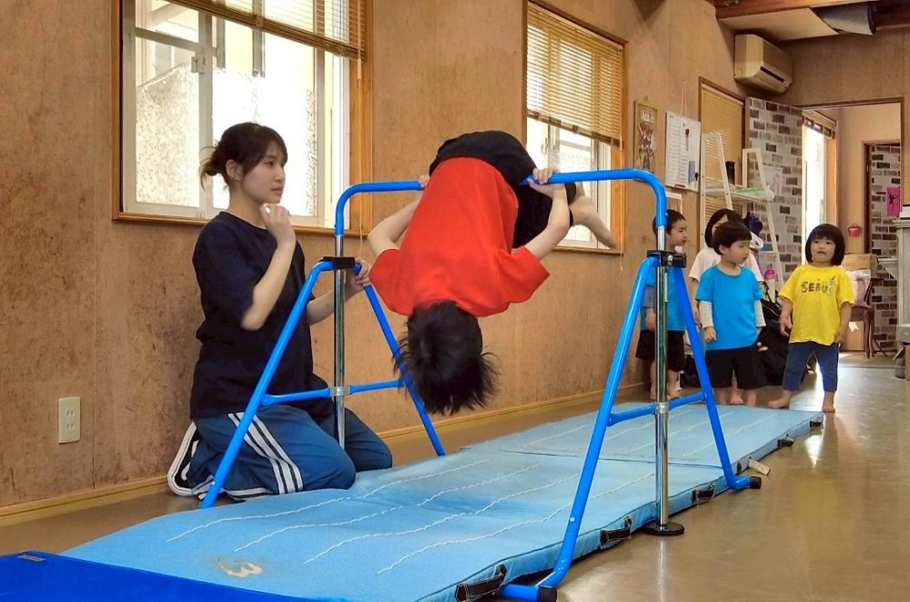 跳び箱・マット運動・鉄棒・平均台等を用いたレッスンを行い、柔軟で体幹のしっかりした体作り!身体能カアップ!体育が得意になるレッスンを目指します。